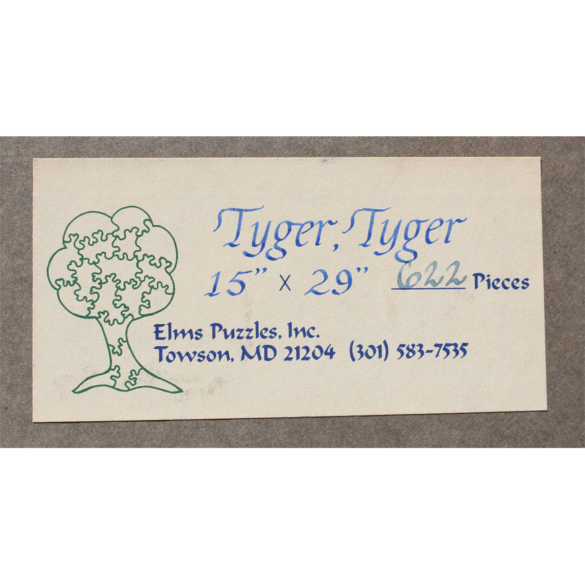 Very rare, early ELMS cut by Betsy Stuart. This is probably the hardest traditional puzzle we have ever done. It is the only ELMS, and puzzle for that matter, that we have come across that is cut in this semi-push fit style. Starting with an amazing image of a tiger (not quite sure why the “Y” for the spelling in the title!), complete with irregular edges and a great cut, albeit incredibly difficult! Don’t miss out on an incredible addition to any collection!
