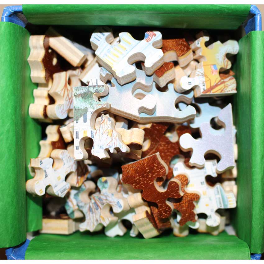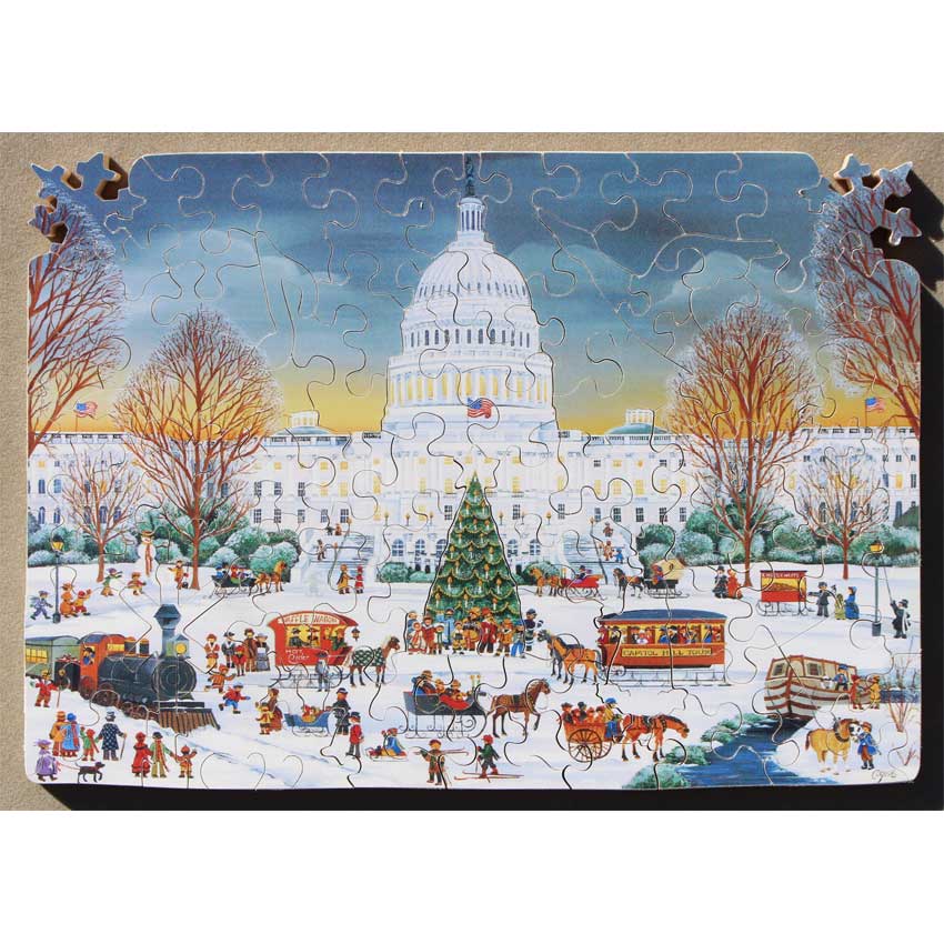 A gorgeous Christmas themed puzzle of Capital Hill. If you like Wysocki’s images, then you are bound to also appreciate the amazing detail Carol Dyer has with her images. Too much to mention, but for a smaller puzzle we also loved the corner details as well!