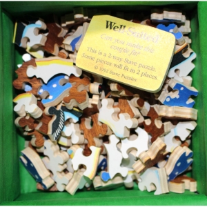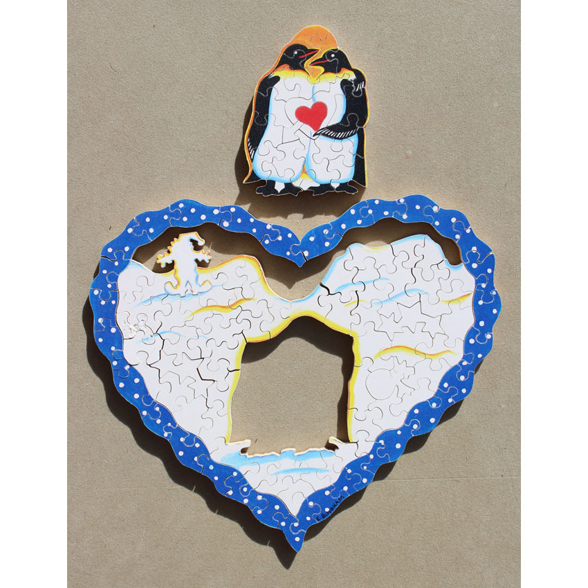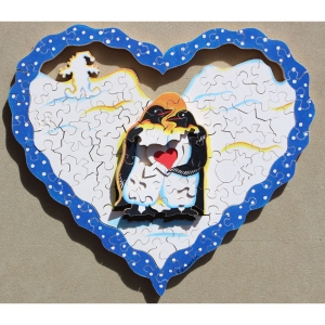 Can you warm up these love birds by getting them safely in their little cove? This Trick is a little deceiving in terms of how to solve it. Interesting side note, the design has changed over the years. We sold an earlier version of this puzzle a few years ago and the cut and solution was different.