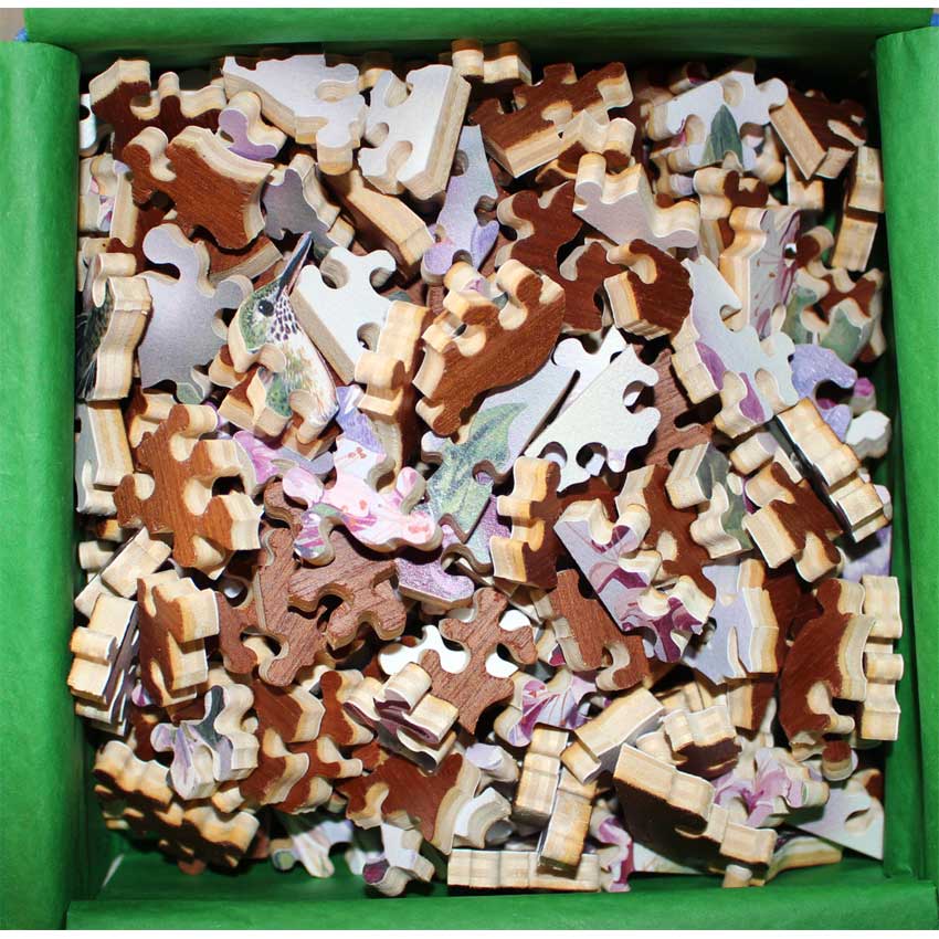 A narrow and tall puzzle which has a very intriguing feature to the cut that is not obvious until the puzzle is essentially completed. We don’t give it away, but it is a very cool feature. This is a good challenge given the shades and design. Give it a try!