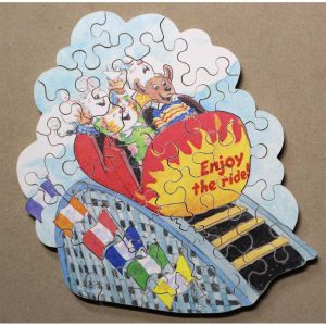 What to expect: Generally puzzles that have an traditional outside frame and then special Teaser pieces must fit inside. Always have a theme and very creative title.
