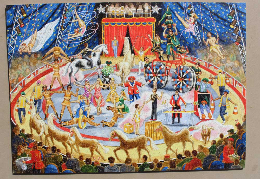 What a fun circus themed puzzle. The artist did a great job of capturing the excitement of one moment in such vivid color.