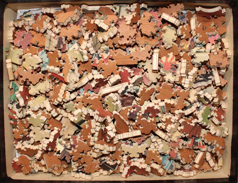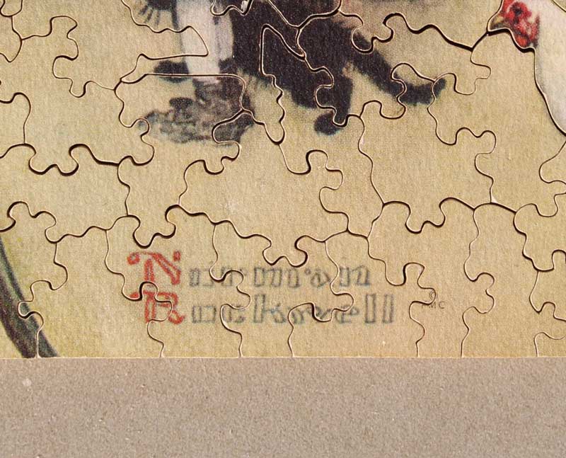 A delightful Norman Rockwell image. As with many of his paintings, there is a great story going on here. Some nice silhouettes and cuts make this another Par classic. This puzzle is from a little later in Par’s history as indicated by the address on the inside lid. We are estimating age to be early 70s to early 80s.