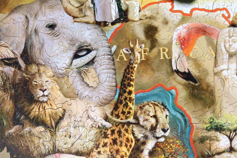 Where do we start with this one? The image is colorful and full of interesting imagery. The irregular edge makes for puzzling delight. However, the silhouettes are our favorite feature of this puzzle, really interesting and special pieces. Plus, comes in a custom Stave wood box which costs $345 alone new. Bonus: Includes a mini-version of the puzzle.