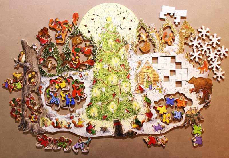 If you are looking for a puzzle that will probably last you way in to the new year, this is it! This has a whole bunch of Teasers, a Trick plus a little bonus Treat. Lots of fun details and cute pieces will make for some great holiday puzzling.