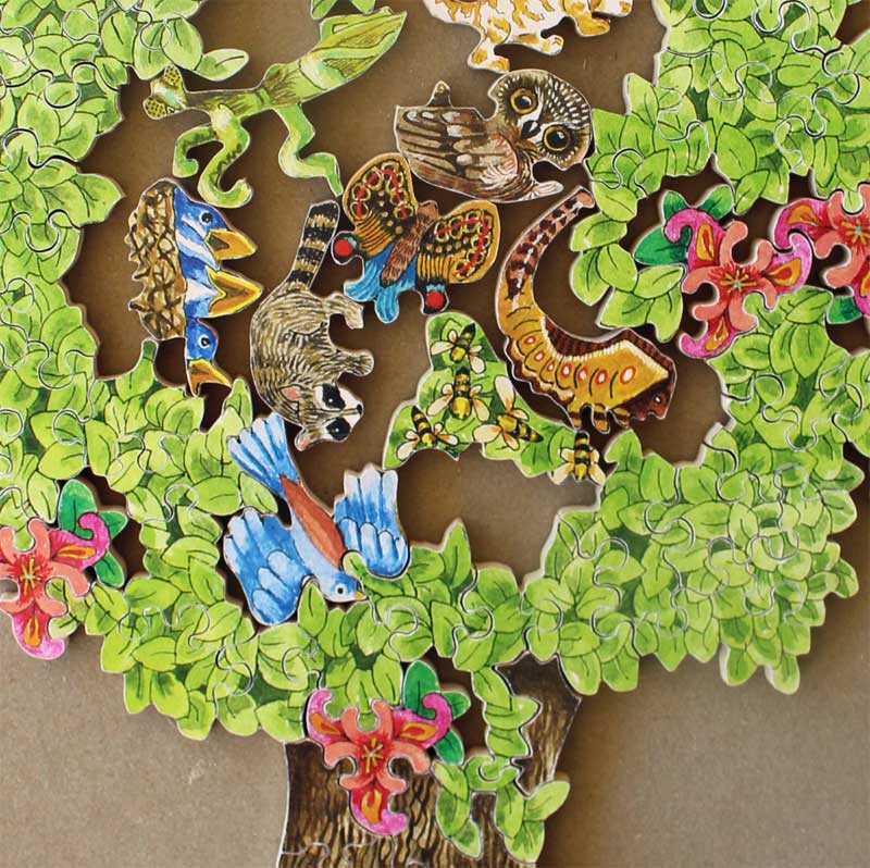 This is one of those teasers that is harder than it looks. Just getting the leaves together is feat in itself. Lookout for all those animals hiding in the branches, they don’t make this one easy.