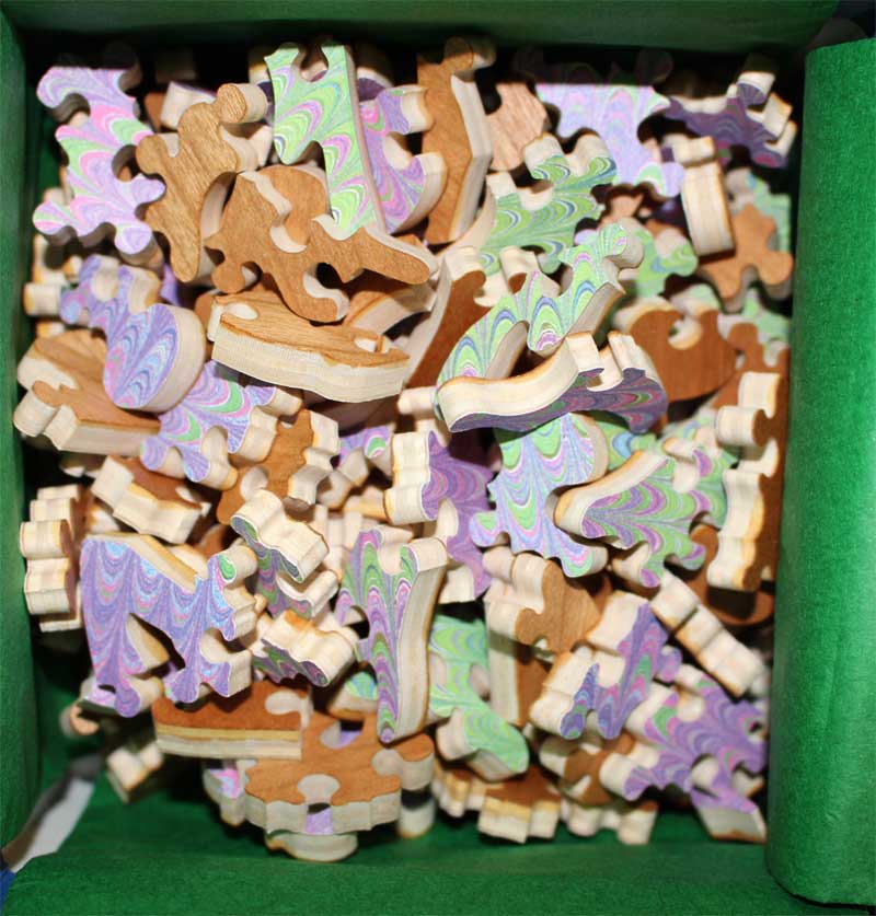 If you are a fan of Tormentors this is a must for your collection. First, it’s a difficult puzzle that will no doubt keep you busy at your puzzling table for some time! The cut as well as the marbleized coloring are both exceptional, enjoy!