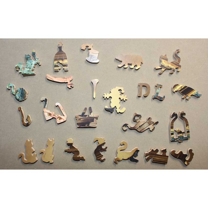 Good – Puzzle has been done a few times and there may be a number of pieces showing wear on their edges.   The wood is in good structural condition, it’s mostly cosmetic issues with the paper layer being worn.