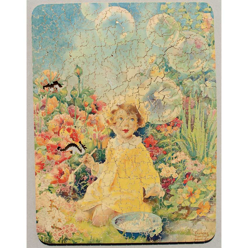 A delightful image by well known artist Frances Tipton Hunter, her art was featured across numerous magazines. This puzzle does have condition noted below, but is a wonderful earlier Par that is a little smaller than the more common 500 and 750 pieces sizes puzzles Par produced.