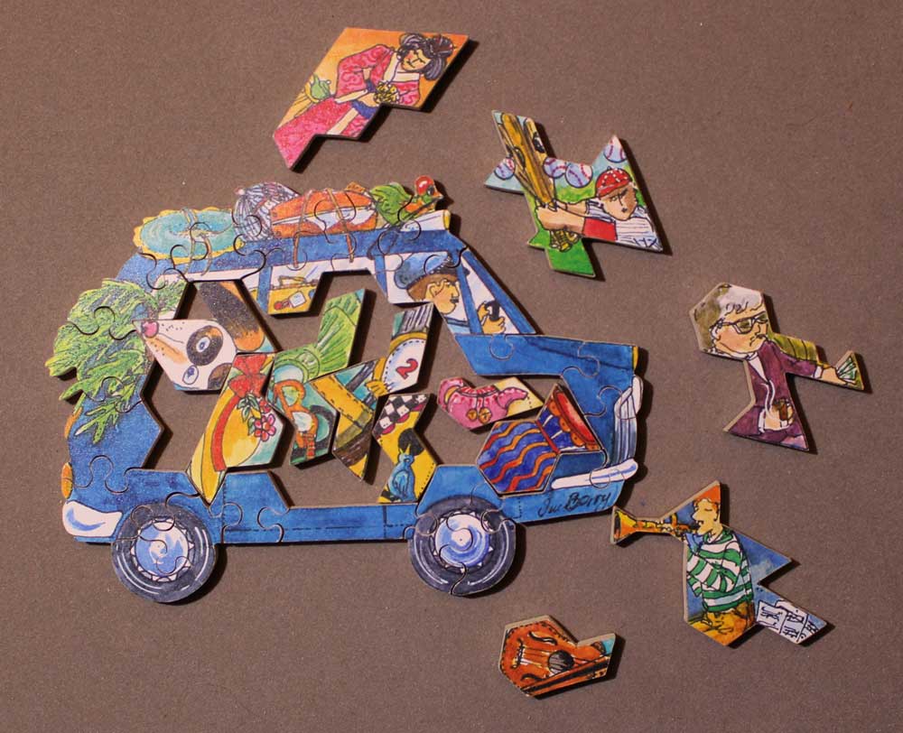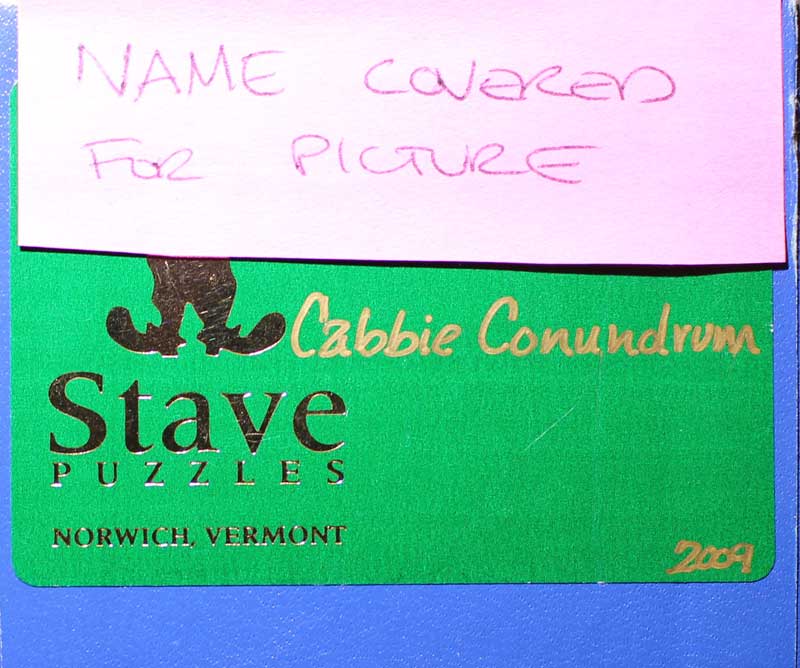 For only 34 pieces, this one packs a lot in a small cab (or puzzle). This is really a 4 for 1 puzzle as there are 4 different solutions you must solve to complete the challenges. Pieces seem influenced by the old push fit puzzles from the early days of wood puzzle cutting. Good luck!