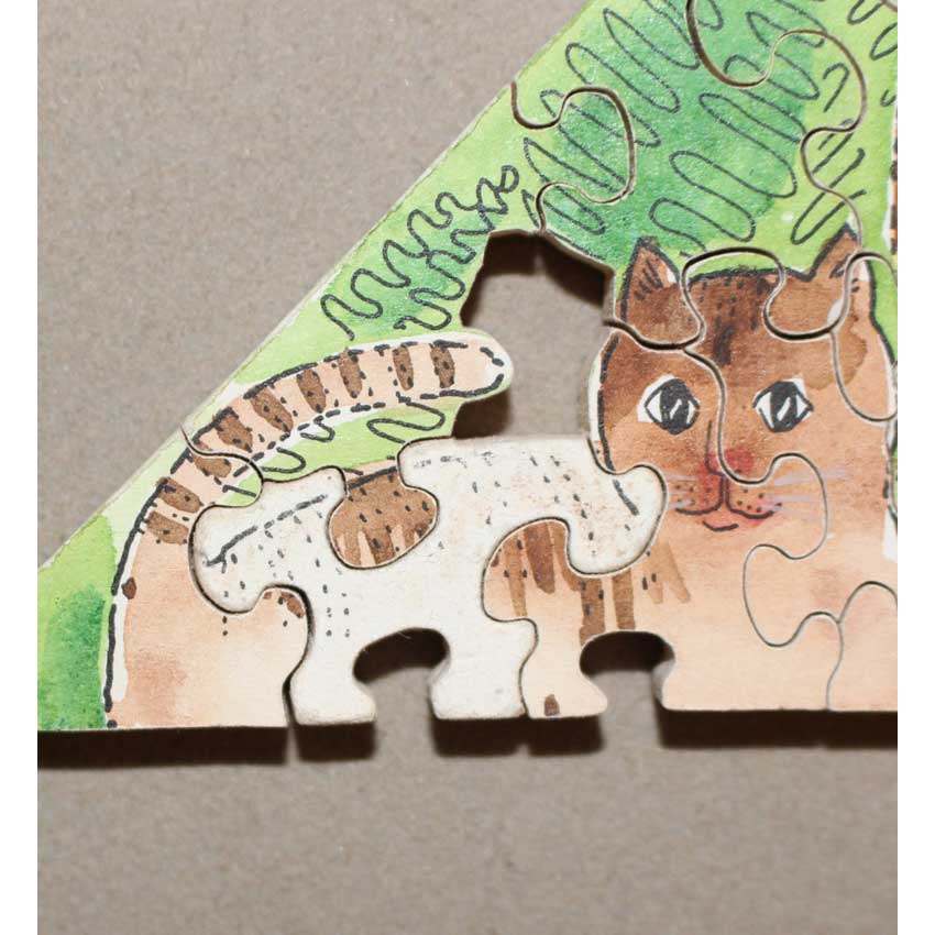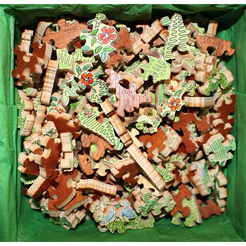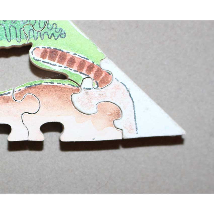 Good – Puzzle has been done a few times and there may be a number of pieces showing wear on their edges.   The wood is in good structural condition, it’s mostly cosmetic issues with the paper layer being worn.