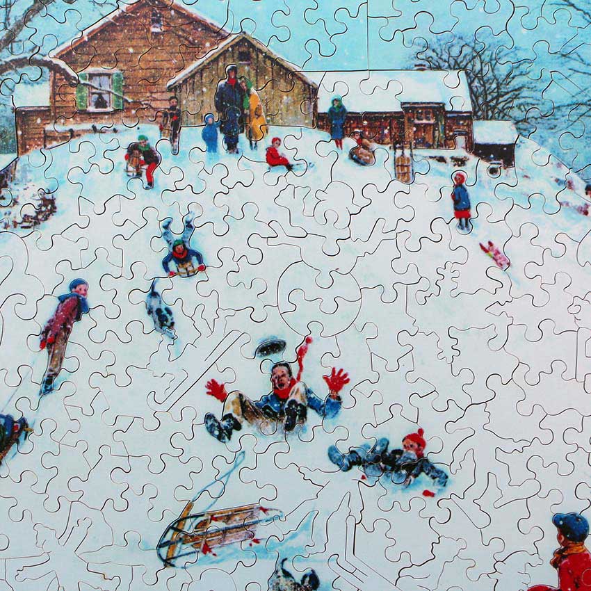 Bring back memories of sledding when you were young? Looks like a lot of fun, just like you will have working on this puzzle. A fair amount of white pieces, but with some fabulous silhouettes you will find it just right for a winter afternoon.