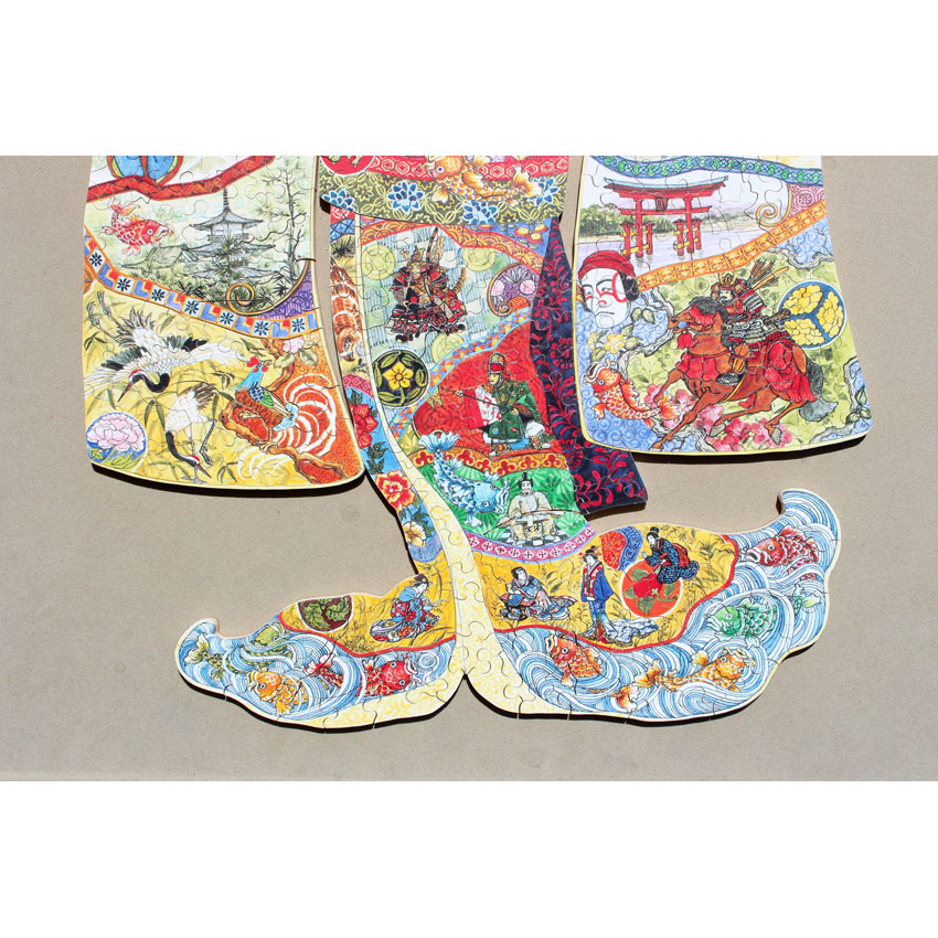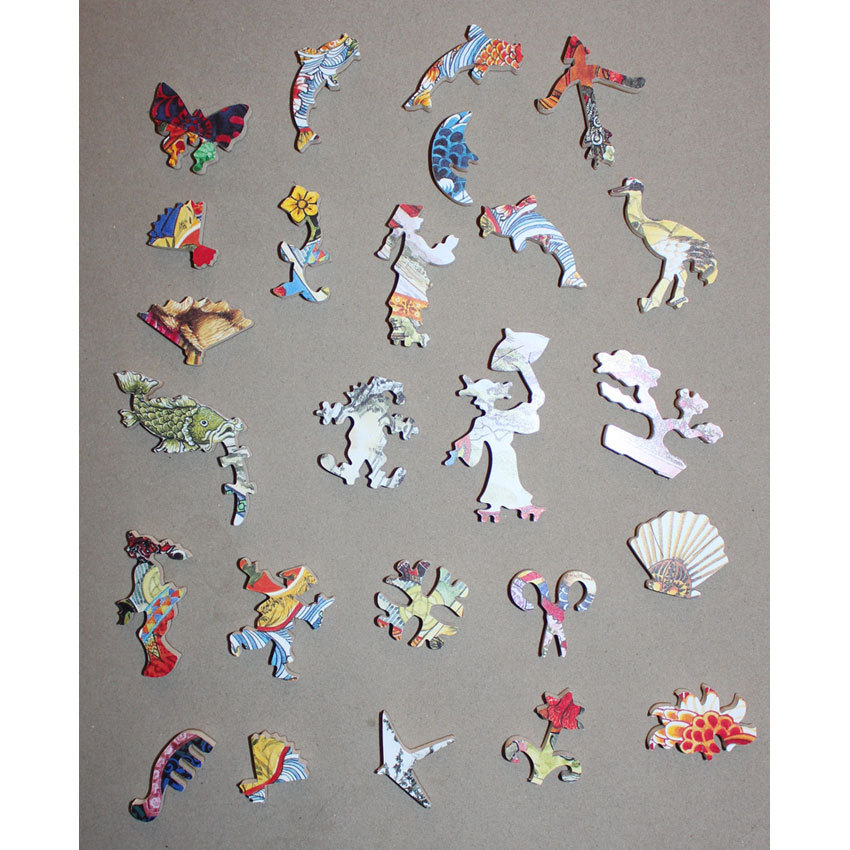 Good – Puzzle has been done a few times and there may be a number of pieces showing wear on their edges.  The wood is in good structural condition, it’s mostly cosmetic issues with the paper layer being worn.