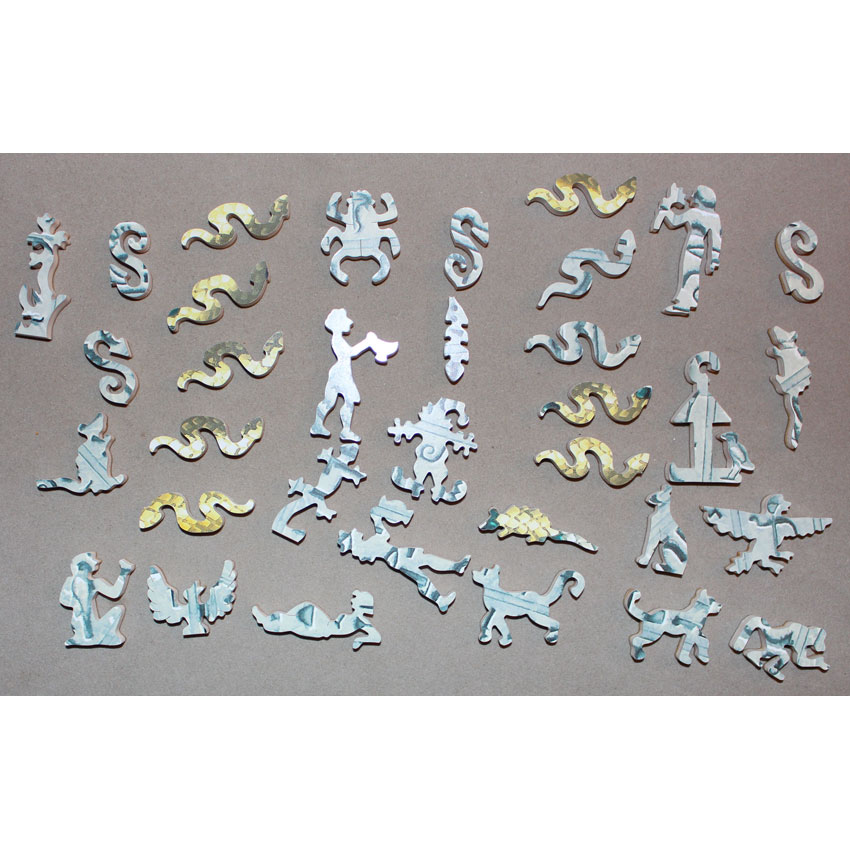 Good – Puzzle has been done a few times and there may be a number of pieces showing wear on their edges. The wood is in good structural condition, it’s mostly cosmetic issues with the paper layer being worn.