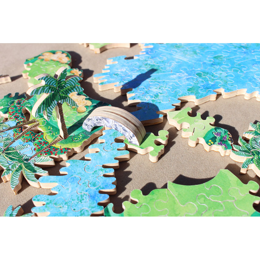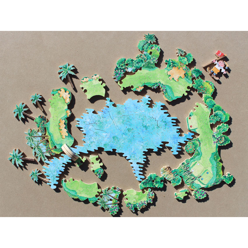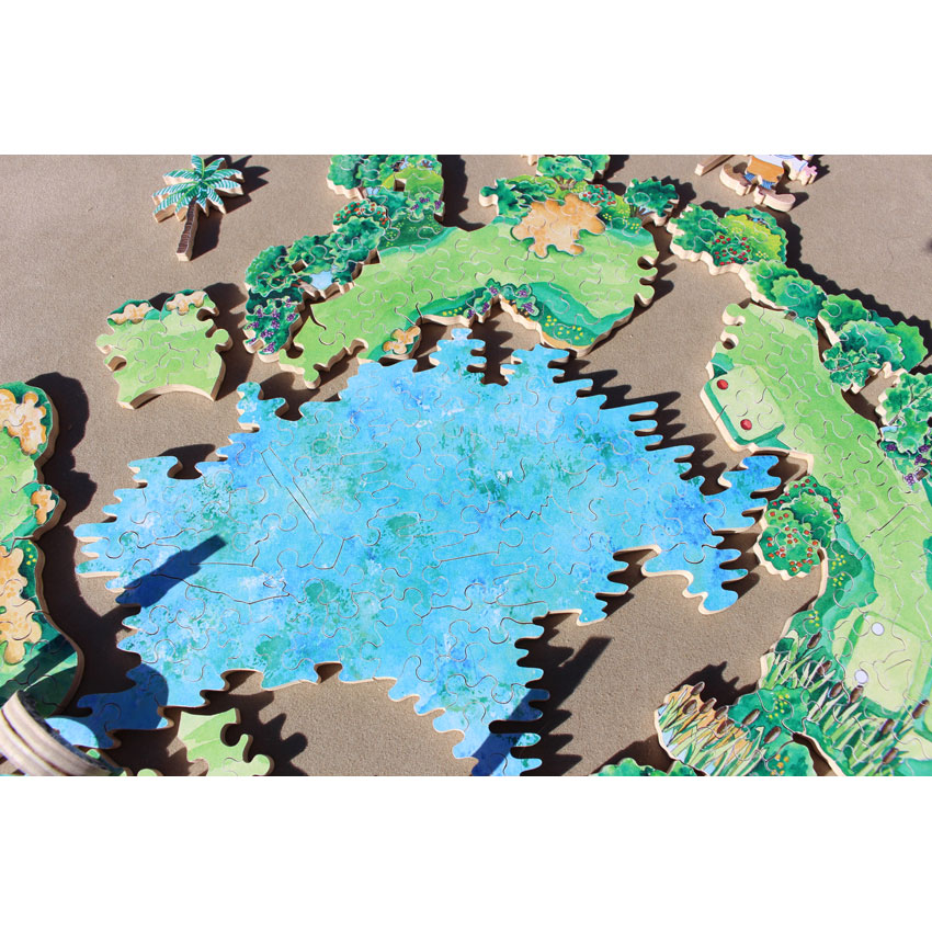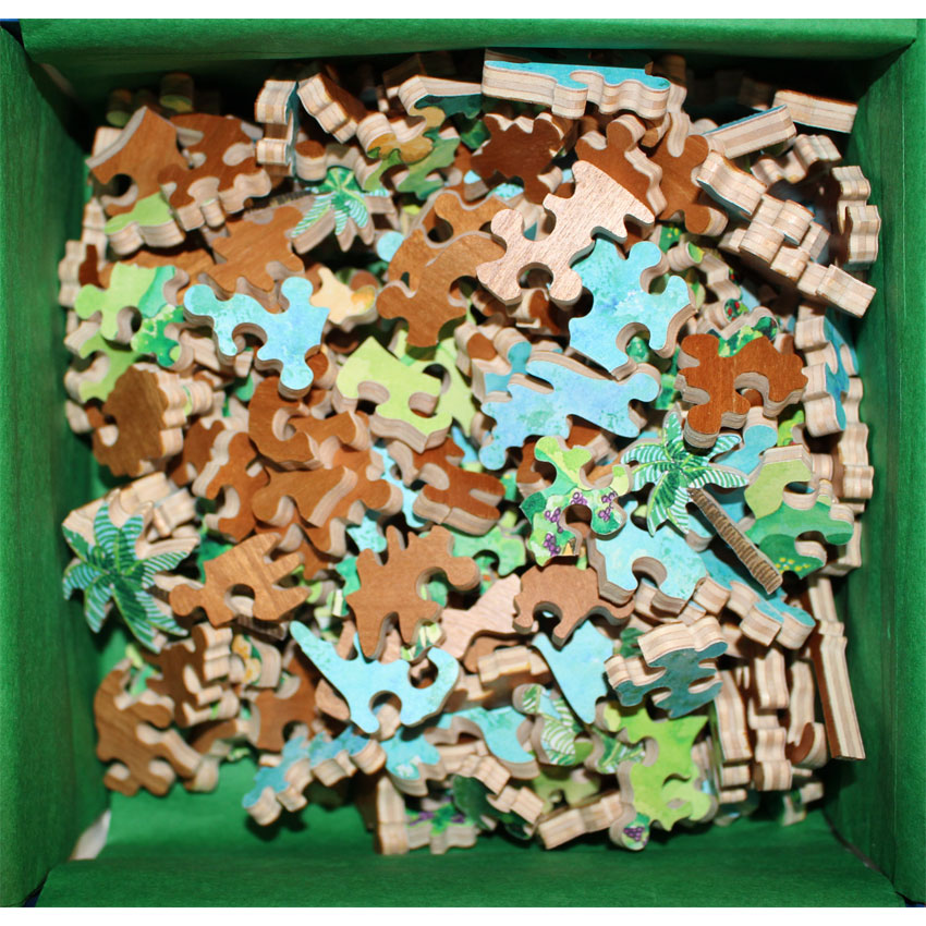 Good – Puzzle has been done a few times and there may be a number of pieces showing wear on their edges. The wood is in good structural condition, it’s mostly cosmetic issues with the paper layer being worn.