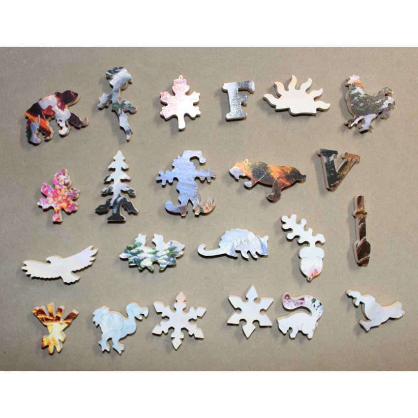 Good – Puzzle has been done a few times and there may be a number of pieces showing wear on their edges. The wood is in good structural condition, it’s mostly cosmetic issues with the paper layer being worn.