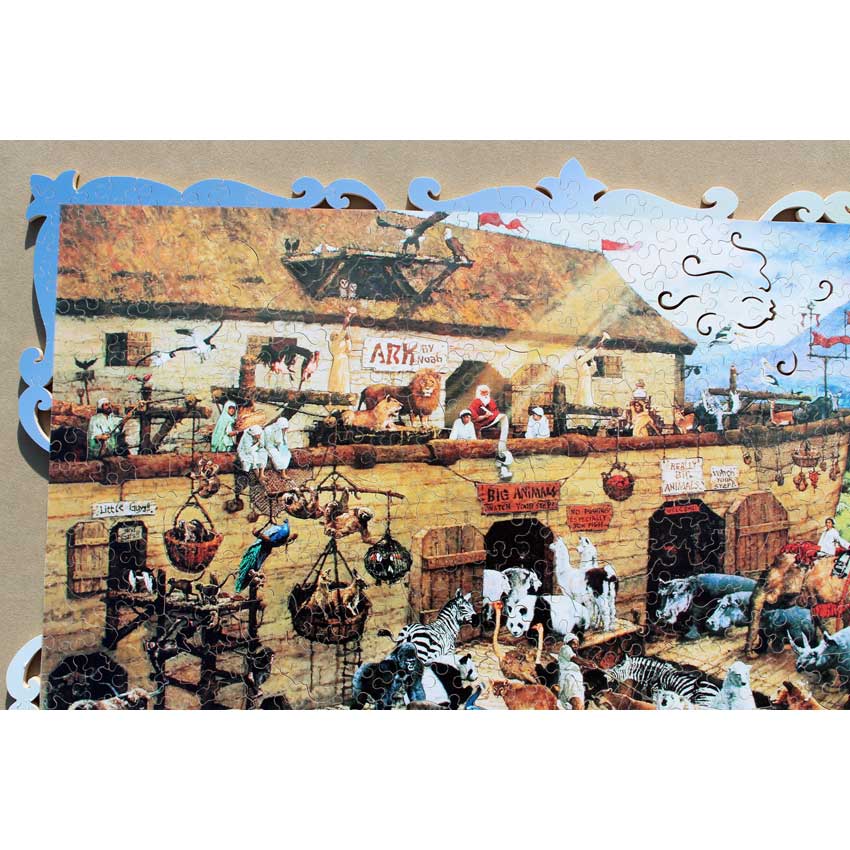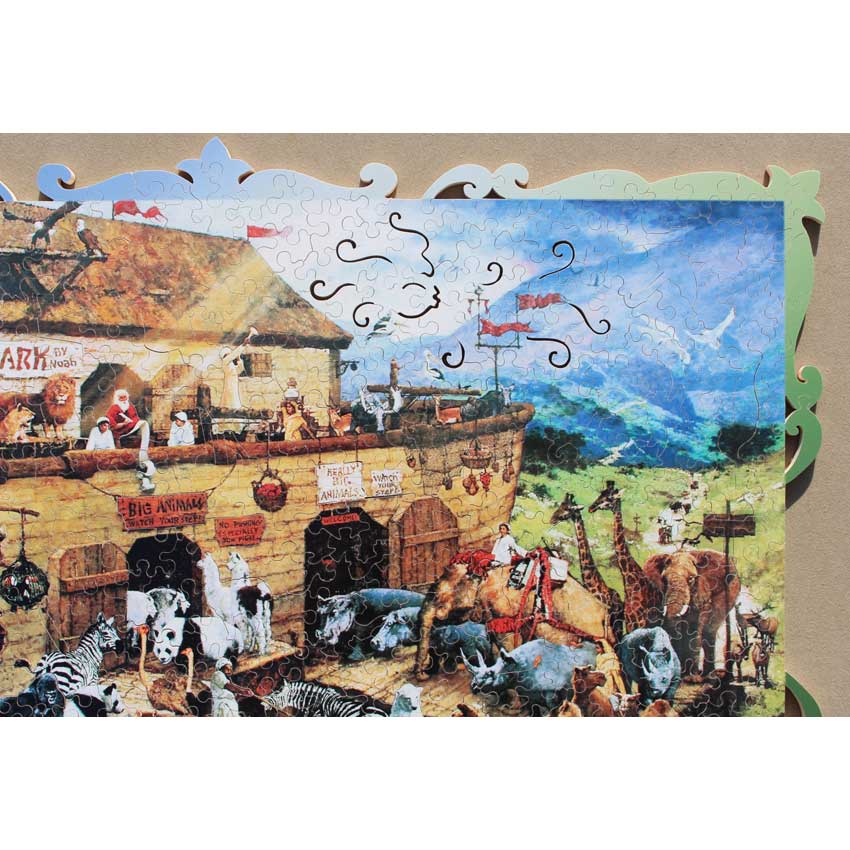 Good – Puzzle has been done a few times and there may be a number of pieces showing wear on their edges. The wood is in good structural condition, it’s mostly cosmetic issues with the paper layer being worn.
