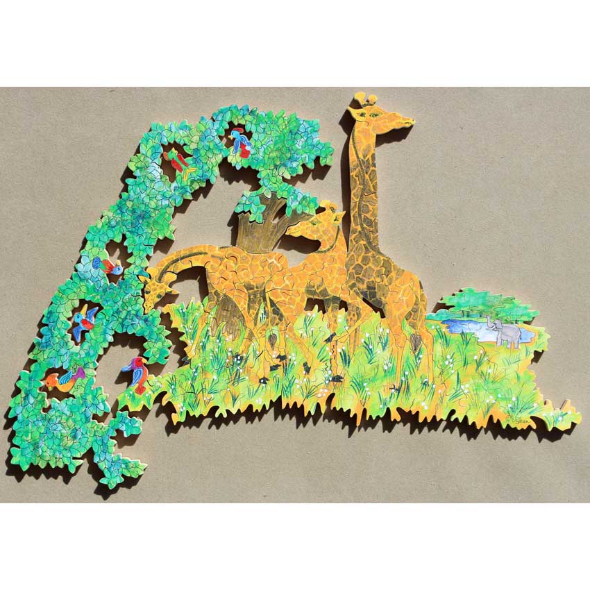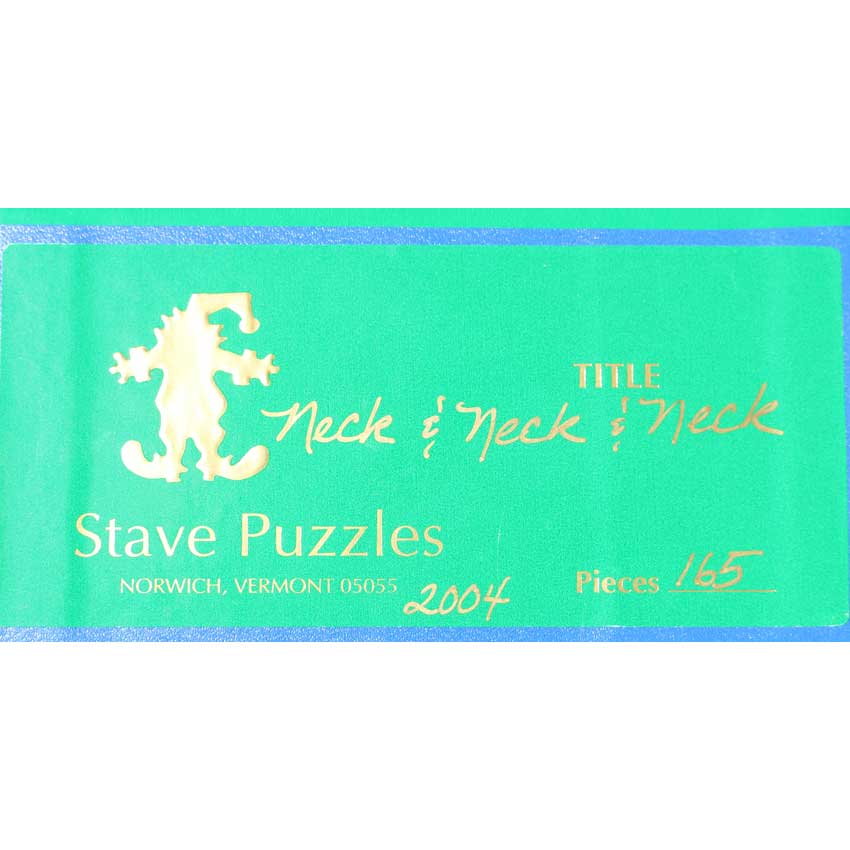 Good – Puzzle has been done a few times and there may be a number of pieces showing wear on their edges. The wood is in good structural condition, it’s mostly cosmetic issues with the paper layer being worn.