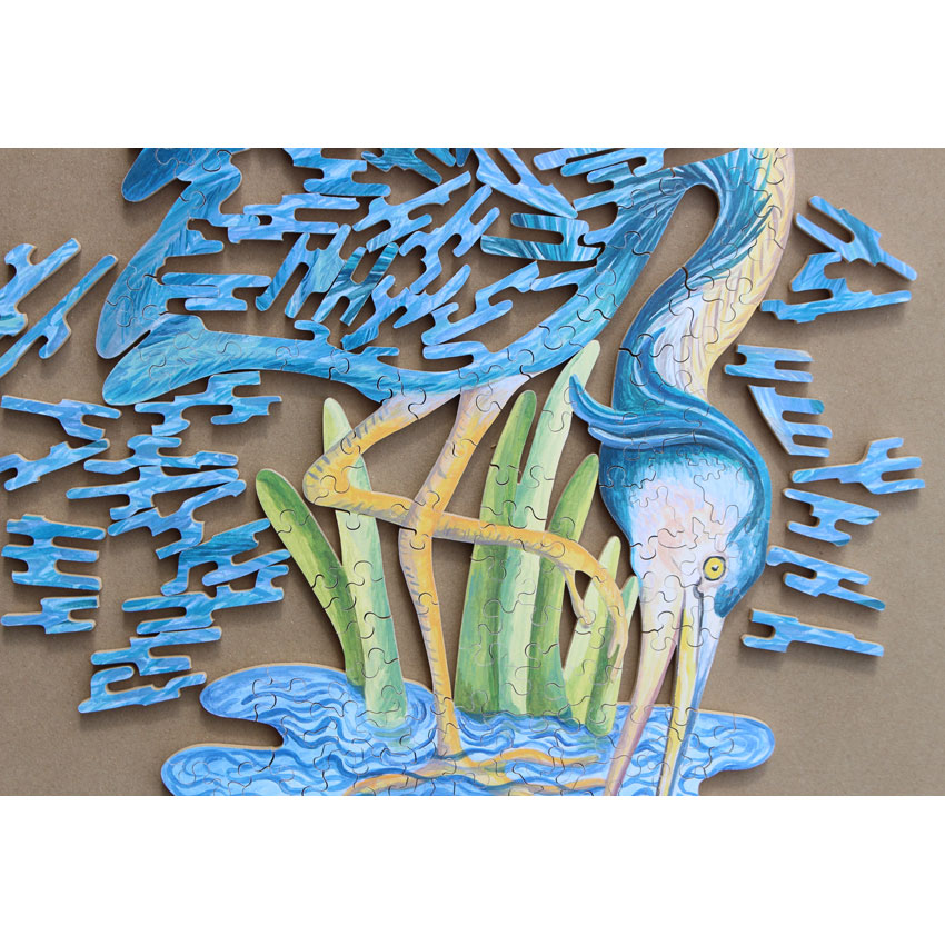 Good – Puzzle has been done a few times and there may be a number of pieces showing wear on their edges. The wood is in good structural condition, it’s mostly cosmetic issues with the paper layer being worn.