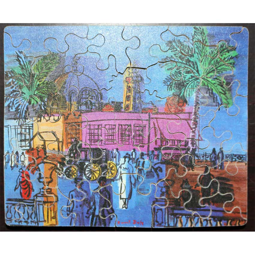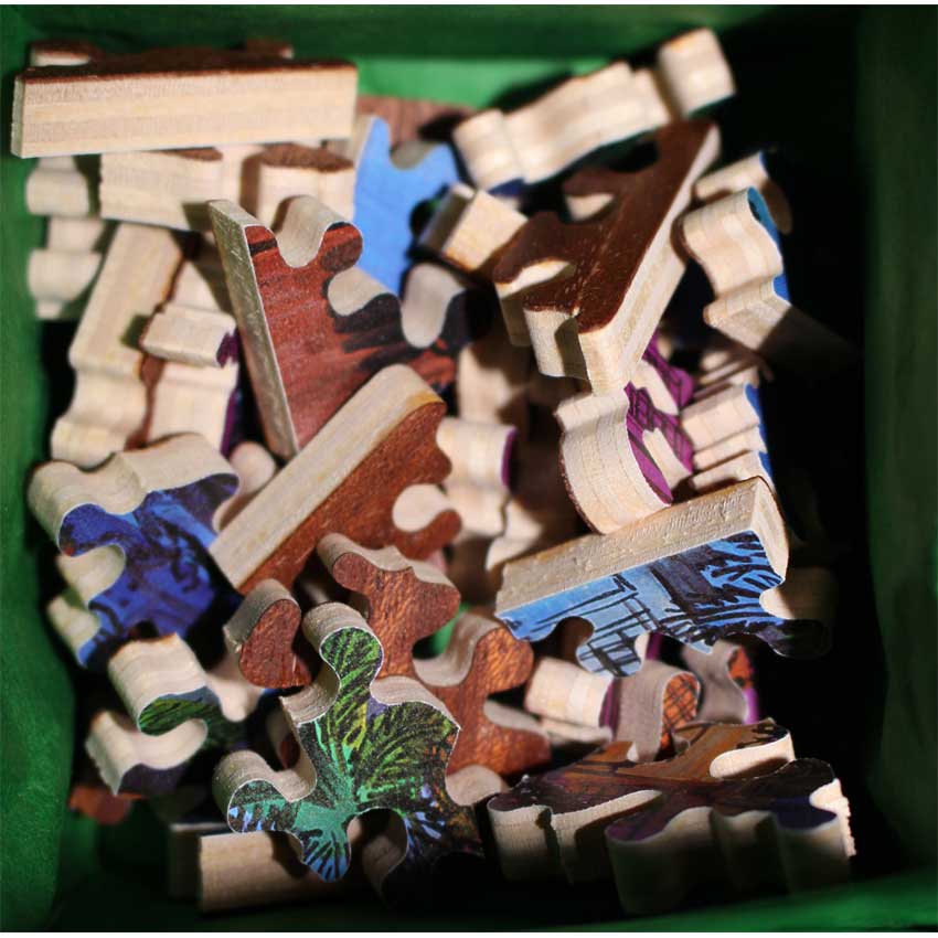 Good – Puzzle has been done a few times and there may be a number of pieces showing wear on their edges. The wood is in good structural condition, it’s mostly cosmetic issues with the paper layer being worn.