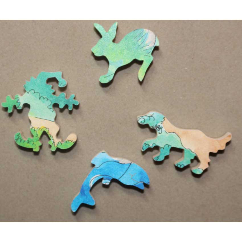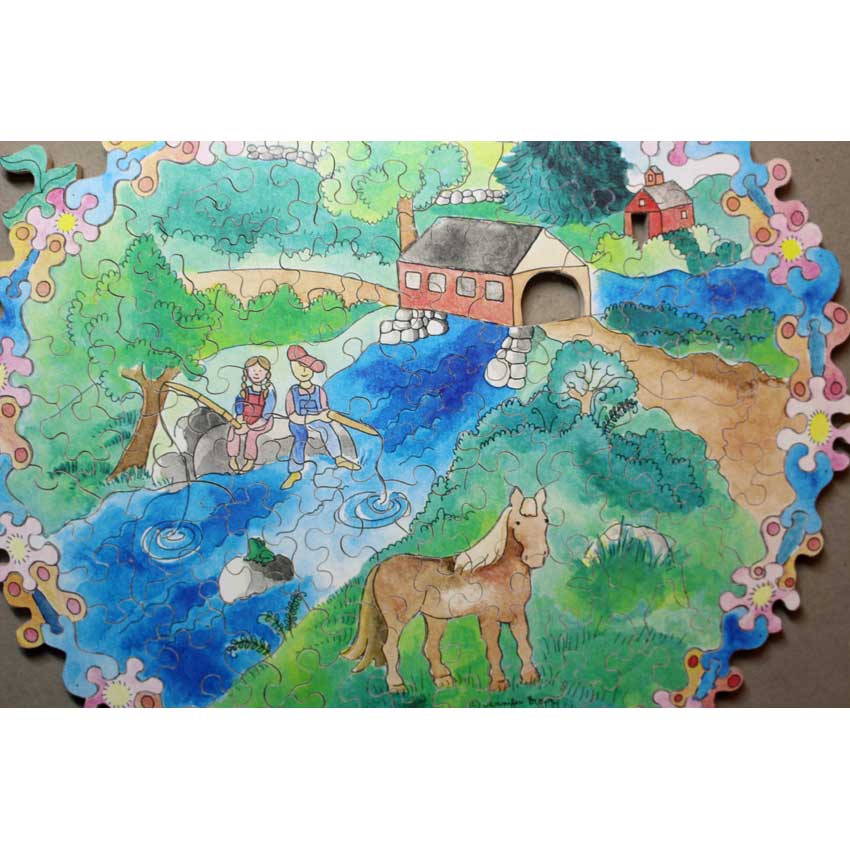 Good – Puzzle has been done a few times and there may be a number of pieces showing wear on their edges.   The wood is in good structural condition, it’s mostly cosmetic issues with the paper layer being worn.