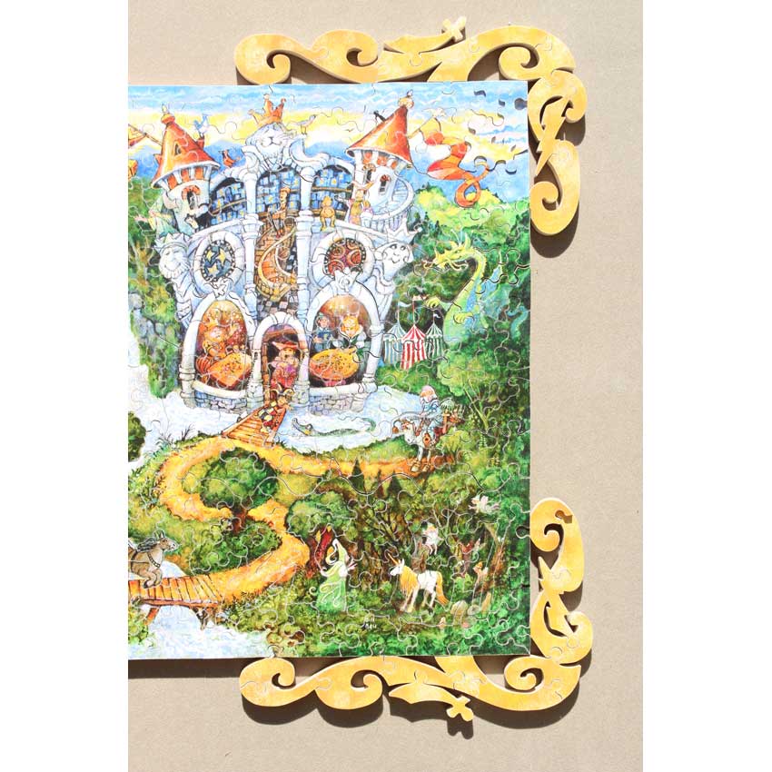 Good – Puzzle has been done a few times and there may be a number of pieces showing wear on their edges.   The wood is in good structural condition, it’s mostly cosmetic issues with the paper layer being worn.