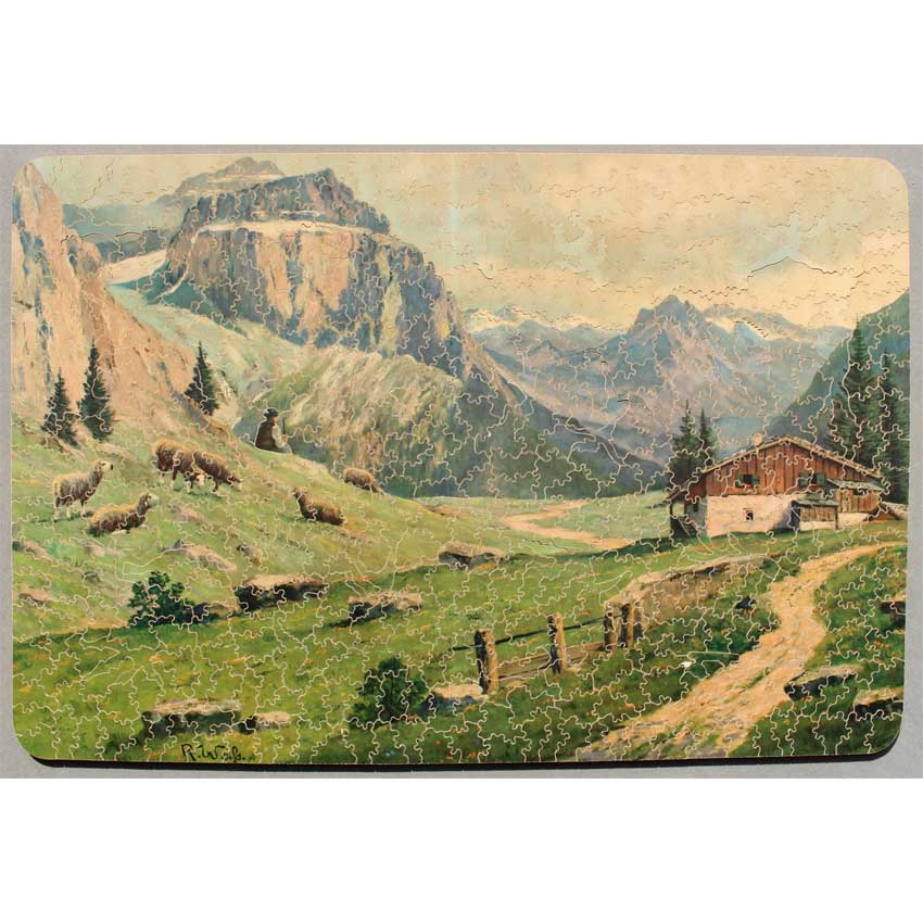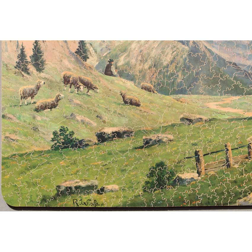 We couldn’t quite make out the artist’s name in the image, but this is a gorgeous mountain scene. Just imagine yourself next to the herder, tending your flock looking off into that amazing scenery. A nice cut with some fun silhouettes, a good challenge but not super hard. An all around great Par.