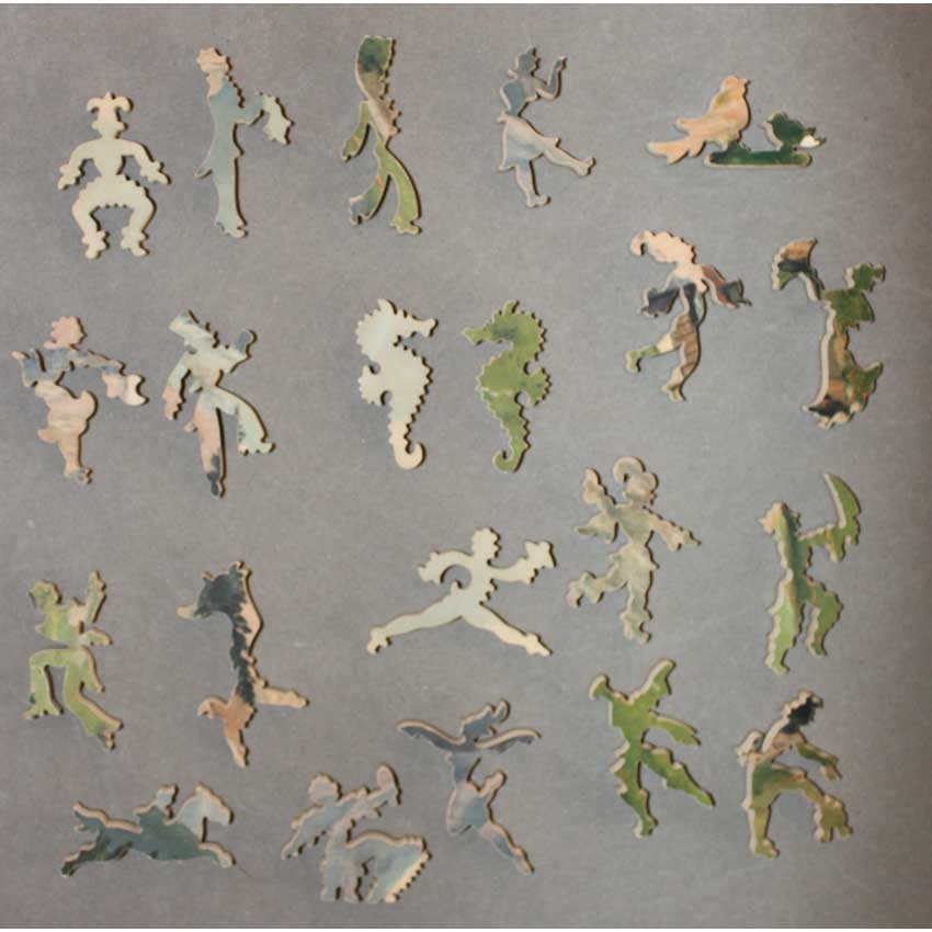 Good – Puzzle has been done a few times and there may be a number of pieces showing wear on their edges.   The wood is in good structural condition, it’s mostly cosmetic issues with the paper layer being worn.