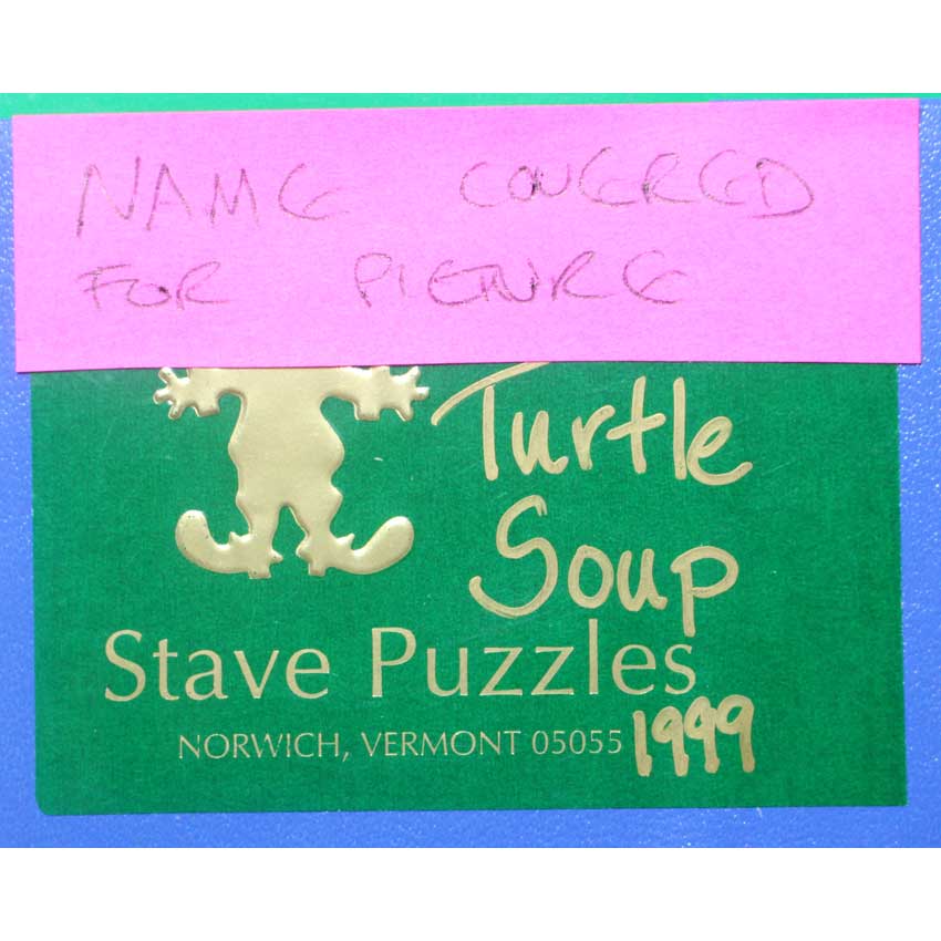 Good – Puzzle has been done a few times and there may be a number of pieces showing wear on their edges. The wood is in good structural condition, it’s mostly cosmetic issues with the paper layer being worn.