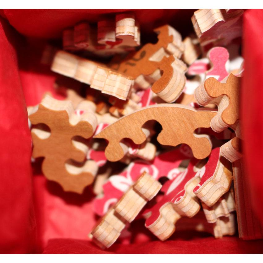 Good – Puzzle has been done a few times and there may be a number of pieces showing wear on their edges. The wood is in good structural condition, it’s mostly cosmetic issues with the paper layer being worn.
